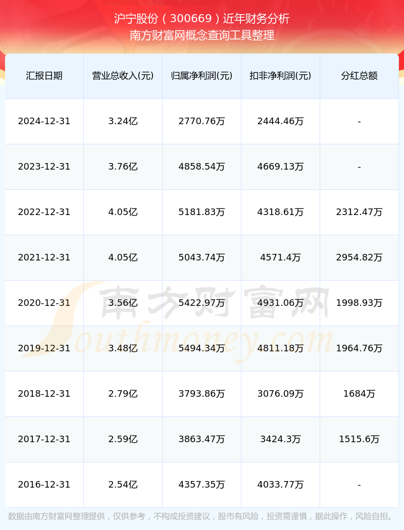 2024年總營收3.24億,同比增長-13.89%;凈利潤2770.76萬,同比增長-42.97%;銷售毛利率24.39%。