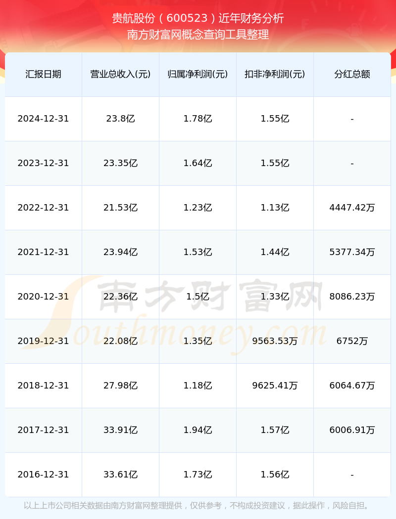 貴航股份歷年分紅派息情況如下表所示: