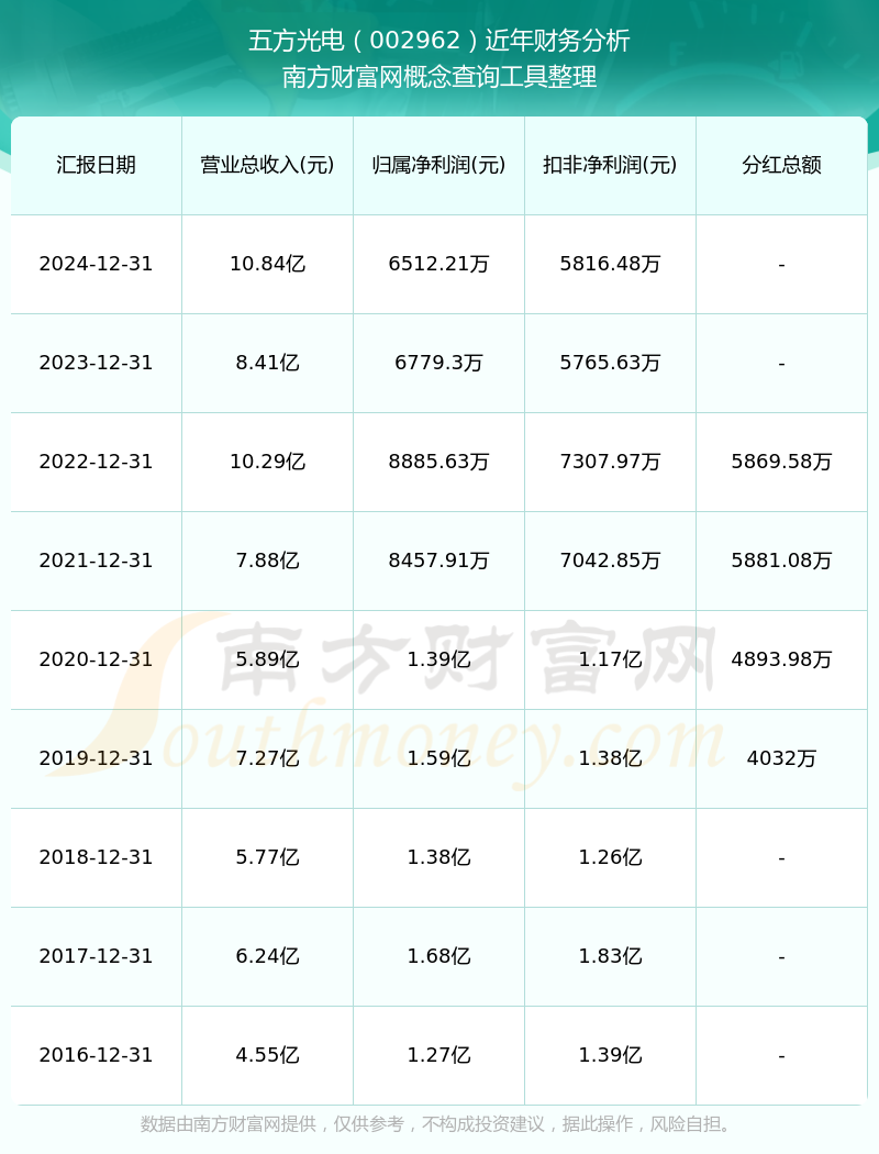 五方光電公司2024年實(shí)現(xiàn)營收10.84億元,凈利潤6512.21萬元,毛利率15.49%。