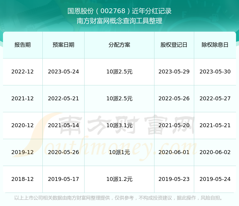 國恩股份最新一次公布的分紅方案:10派2.5元。