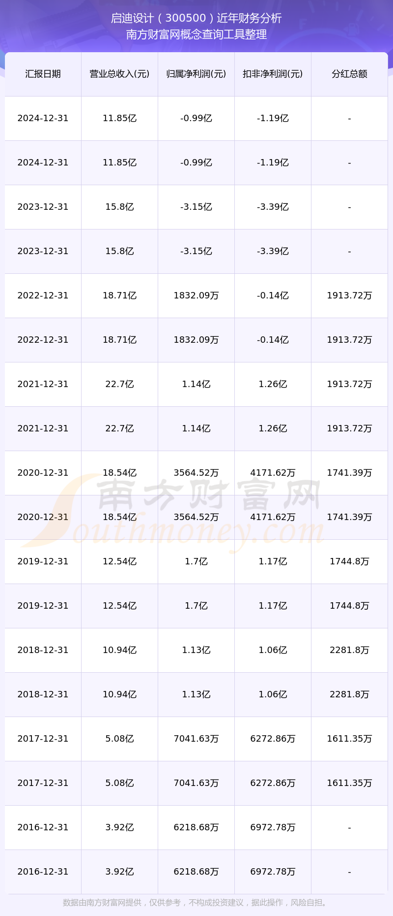 近年啟迪設(shè)計(jì)分紅派息情況如下表所示: