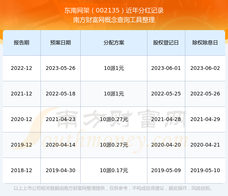 東南網(wǎng)架最新一次公布的分紅方案:10派1元。