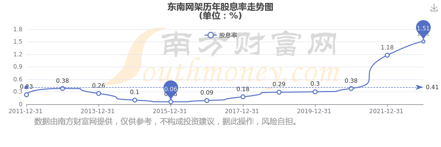 東南網(wǎng)架歷年股息率走勢如下圖: