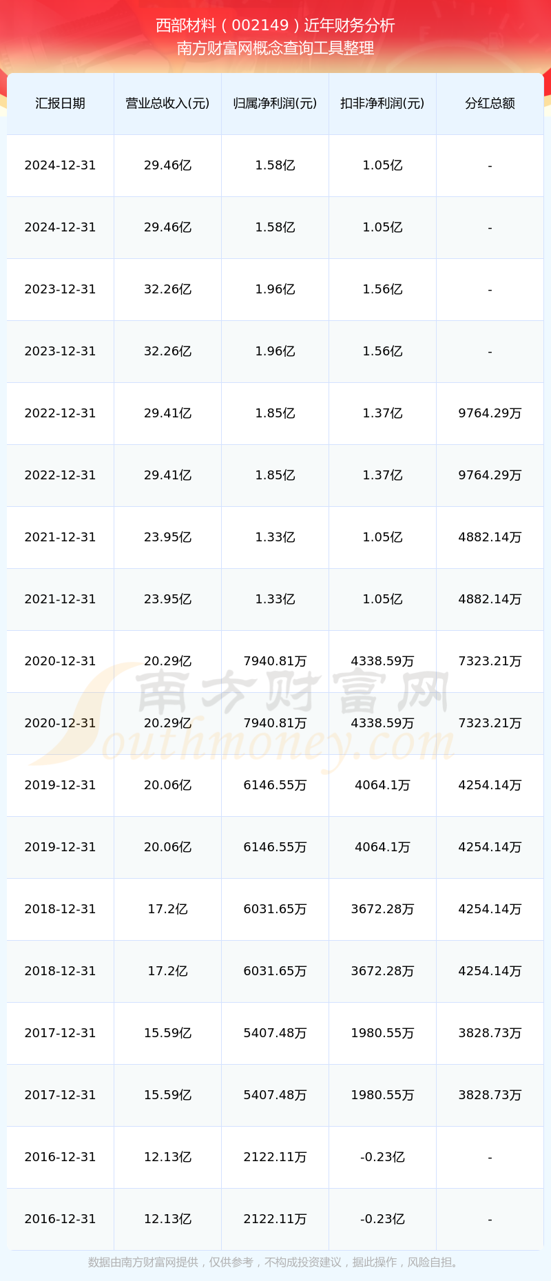 西部材料公司2024年實現(xiàn)營收29.46億元,凈利潤1.58億元,毛利率20.64%。