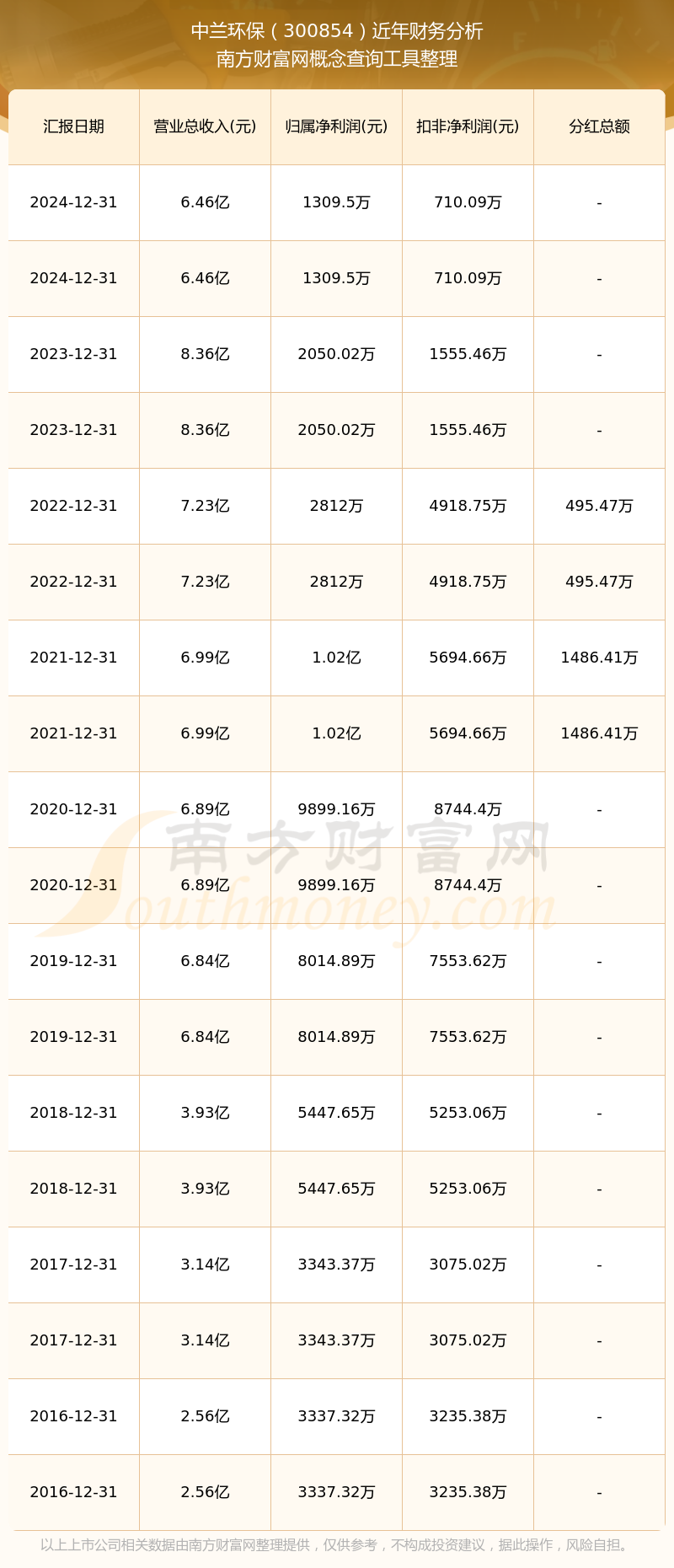 近年中蘭環(huán)保分紅派息情況如下表所示: