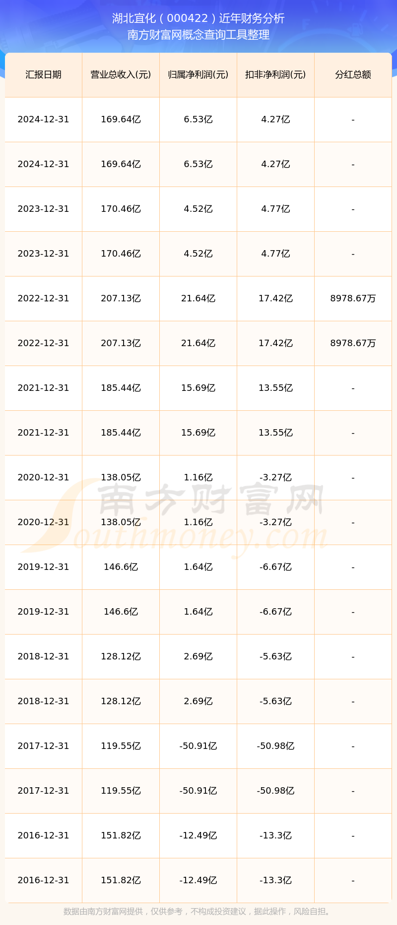 近年湖北宜化分紅派息情況如下表所示: