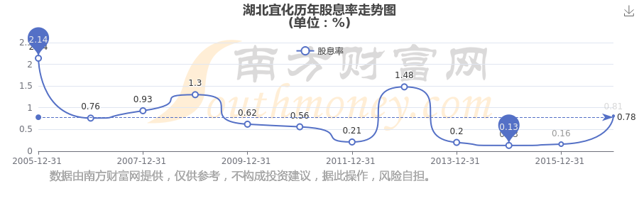 湖北宜化歷年股息率走勢(shì)如下圖: