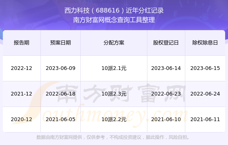 西力科技最新一次公布的分紅方案:10派2.1元。