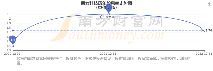 西力科技?xì)v年股息率走勢(shì)如下圖: