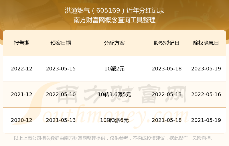 近年洪通燃?xì)夥旨t派息情況如下表所示:
