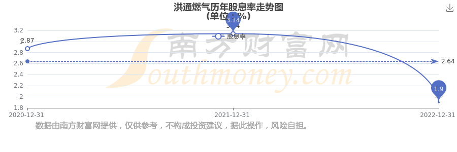 洪通燃?xì)鈿v年股息率走勢如下圖: