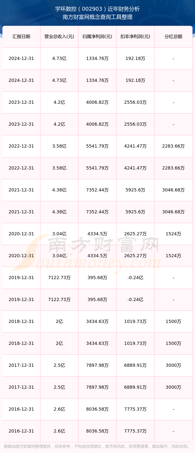 宇環(huán)數(shù)控歷年分紅派息情況如下表所示: