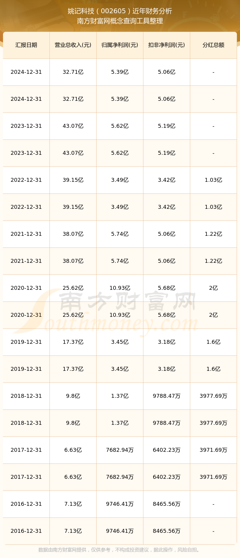 近年姚記科技分紅派息情況如下表所示: