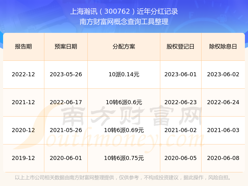 上海瀚訊最新一次公布的分紅方案:10派0.14元。