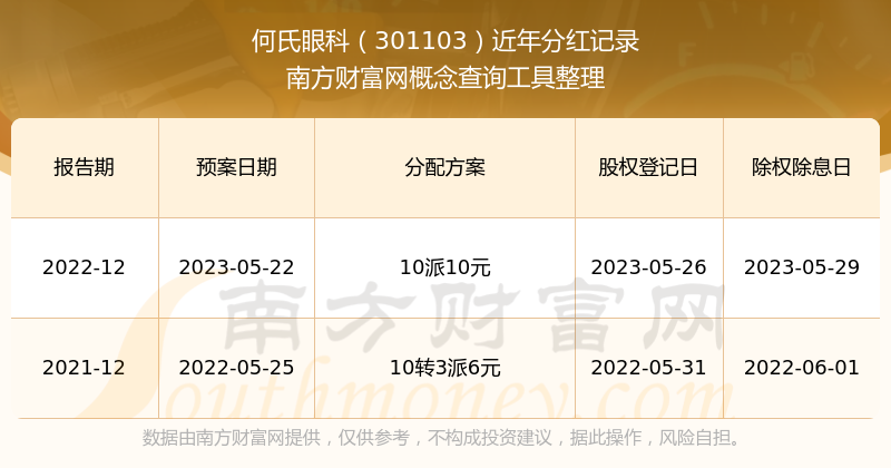 何氏眼科最新一次公布的分紅方案:10派10元。
