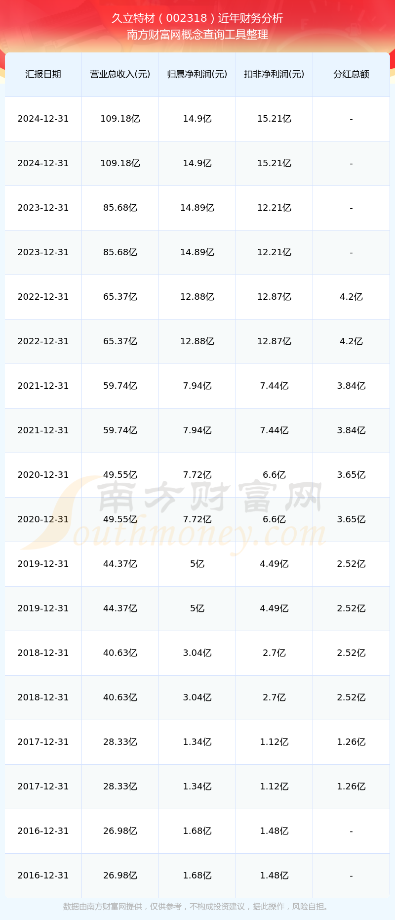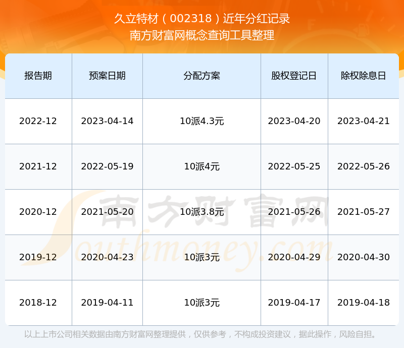 久立特材最新一次公布的分紅方案:10派4.3元。