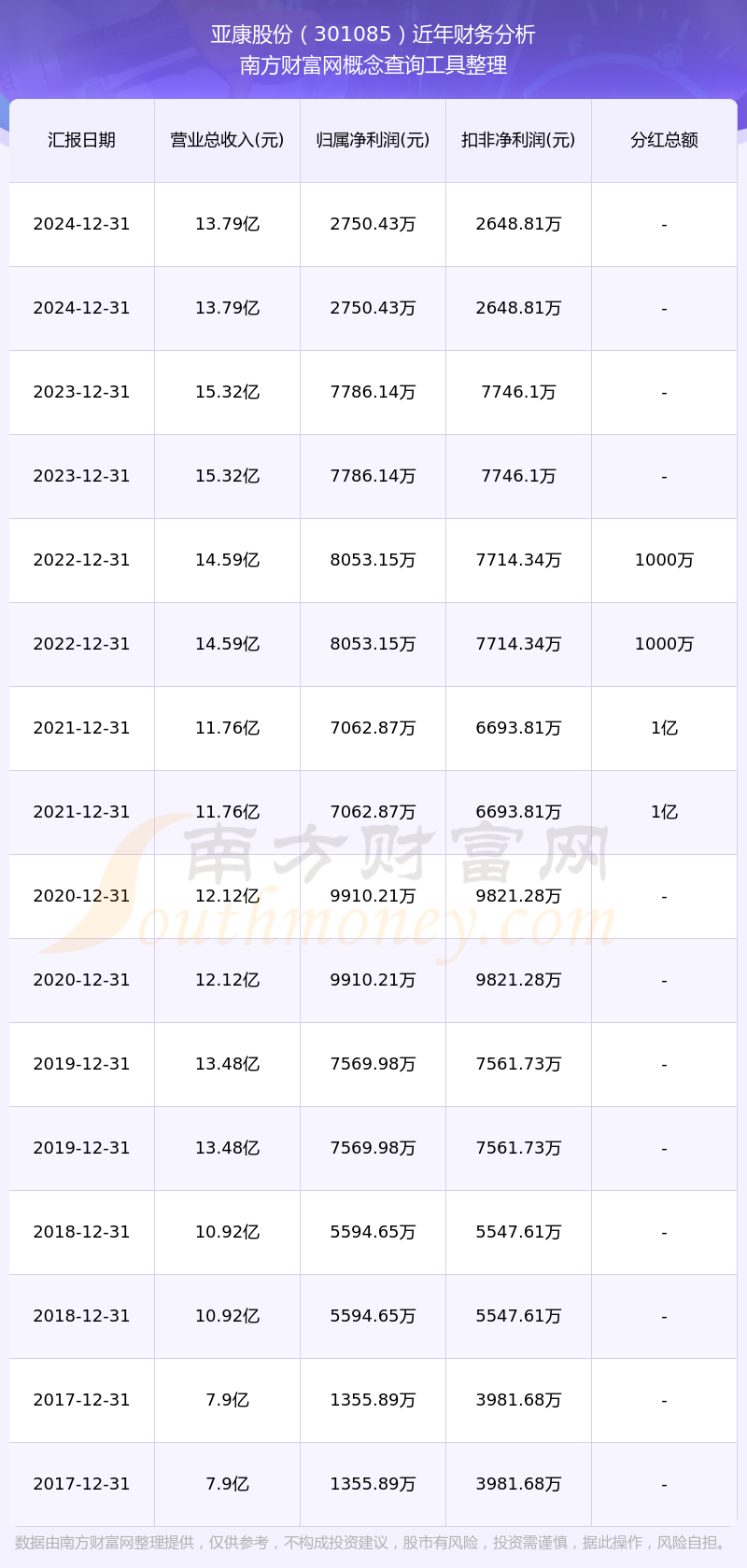 亞康股份公司2024年實現(xiàn)營業(yè)收入13.79億元,同比增長-10.03%;凈利潤2750.43萬元,同比增長-64.68%;毛利率14.28%。