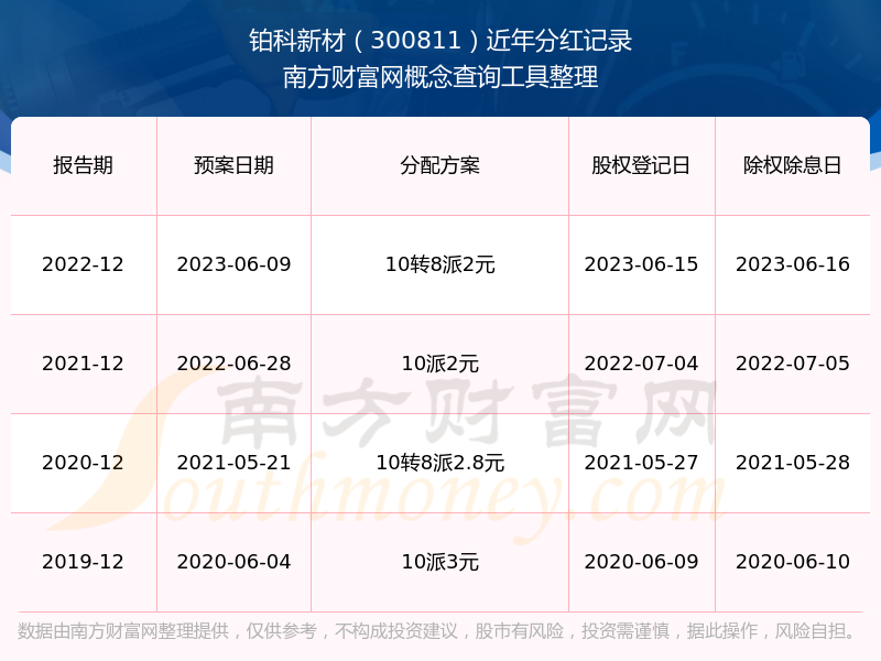 鉑科新材最新一次公布的分紅方案:10轉(zhuǎn)8派2元。