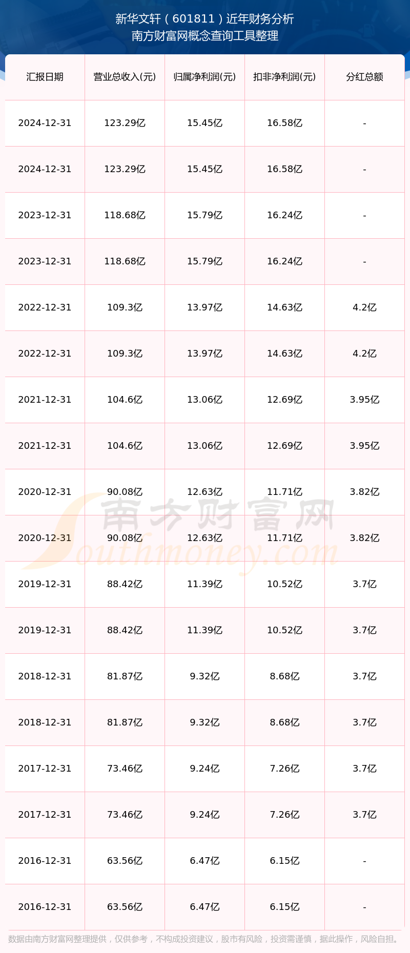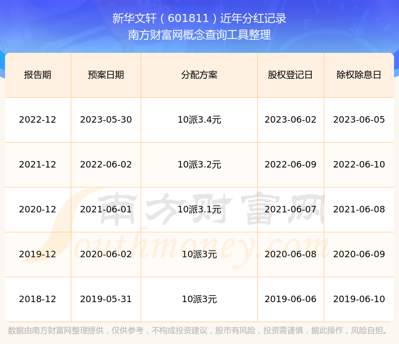 新華文軒歷年分紅派息情況如下表所示: