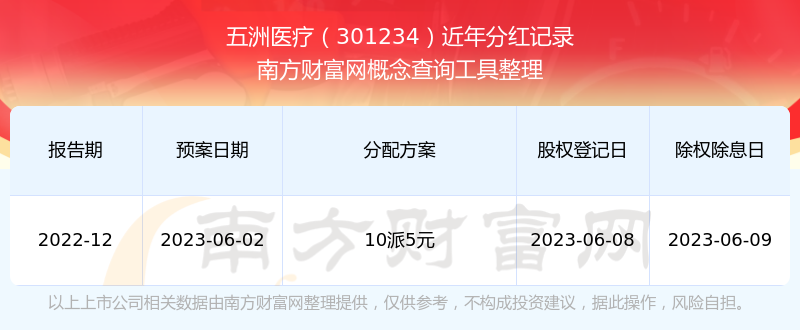 五洲醫(yī)療最新一次公布的分紅方案:10派5元。