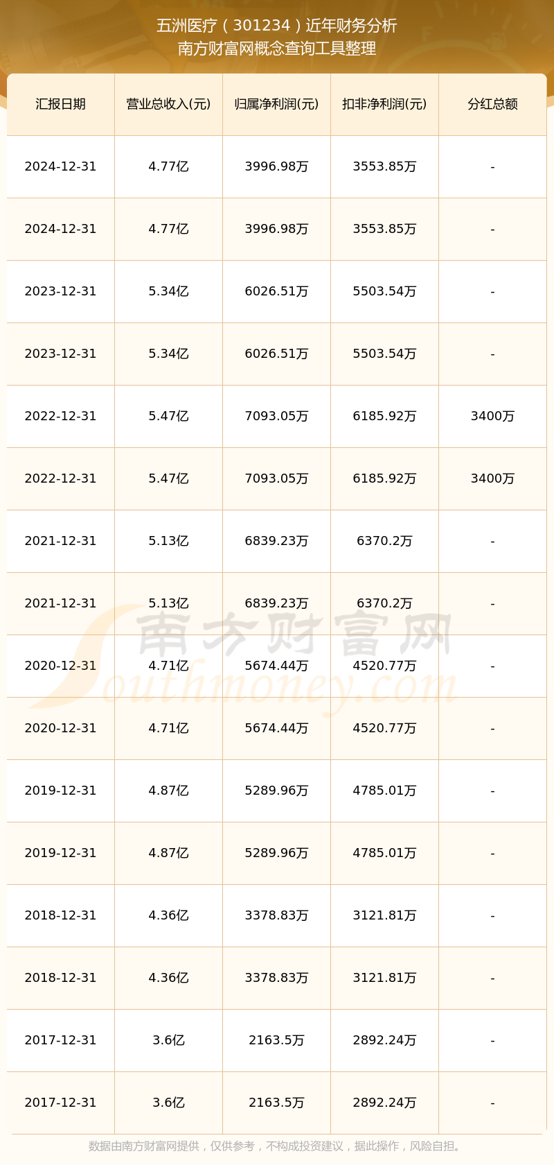 2024年五洲醫(yī)療總營收4.77億,同比增長-10.54%;凈利潤3996.98萬,同比增長-33.68%;銷售毛利率17.8%。