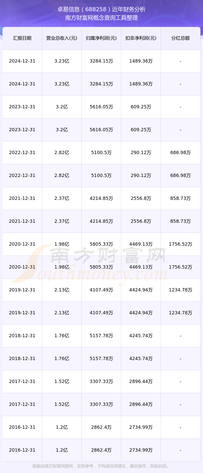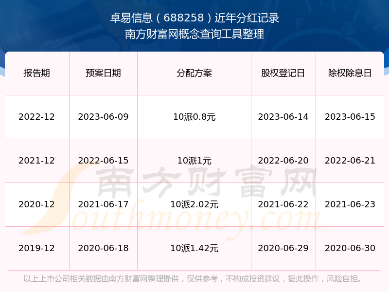 近年卓易信息分紅派息情況如下表所示: