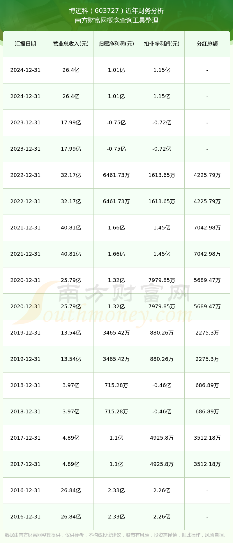 博邁科公司2024年實現(xiàn)營收26.4億元,凈利潤1.01億元,毛利率16.23%。