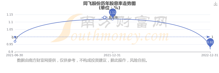 同飛股份歷年股息率走勢(shì)如下圖: