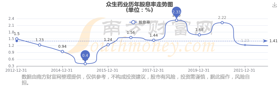眾生藥業(yè)歷年股息率走勢如下圖: