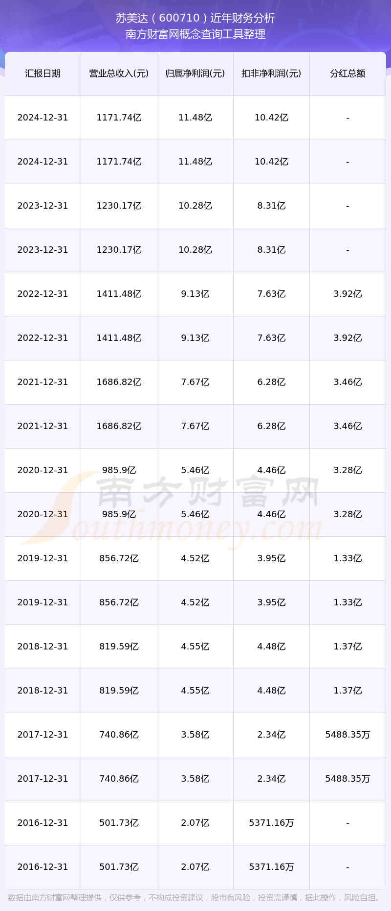 蘇美達公司2024年實現(xiàn)營業(yè)收入1171.74億元,同比增長-4.75%;凈利潤11.48億元,同比增長11.69%;毛利率6.8%。