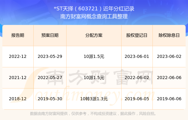 *ST天擇最新一次公布的分紅方案:10派1.5元。