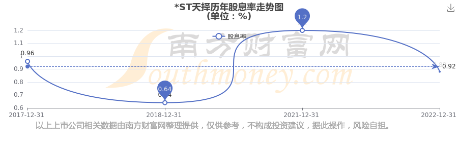 *ST天擇歷年股息率走勢(shì)如下圖: