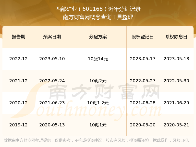 西部礦業(yè)最新一次公布的分紅方案:10派14元。