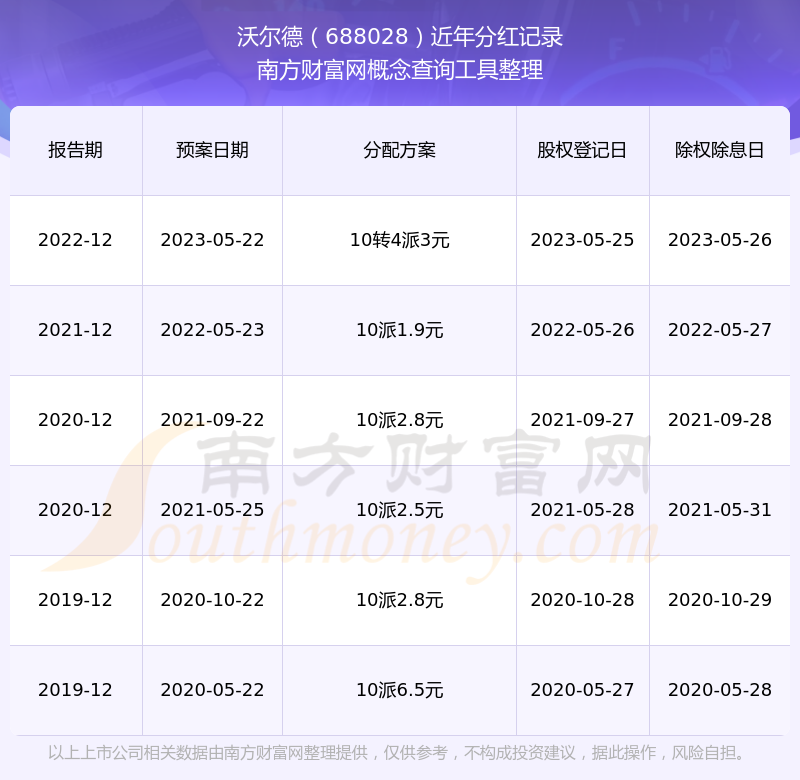 沃爾德最新一次公布的分紅方案:10轉(zhuǎn)4派3元。
