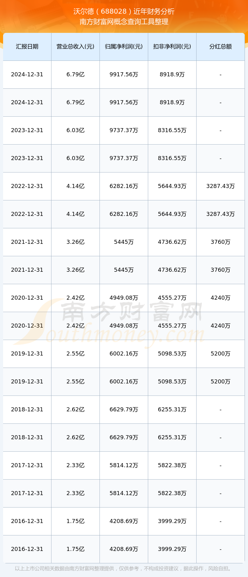 沃爾德公司2024年實現(xiàn)營業(yè)收入6.79億元,同比增長12.54%;凈利潤9917.56萬元,同比增長1.85%;毛利率46.1%。