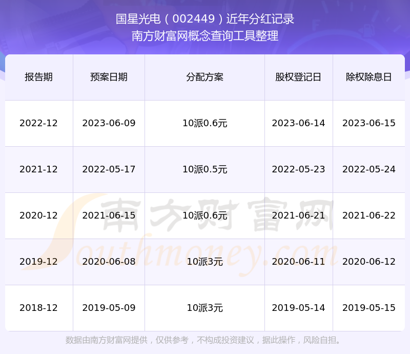 國星光電最新一次公布的分紅方案為10派0.6元。本次權(quán)益分派股權(quán)登記日為2023年6月14日,除權(quán)除息日為2023年6月15日,派息日為2023年6月15日。