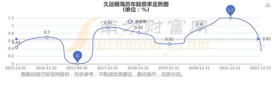 久遠(yuǎn)銀海歷年股息率走勢(shì)如下圖: