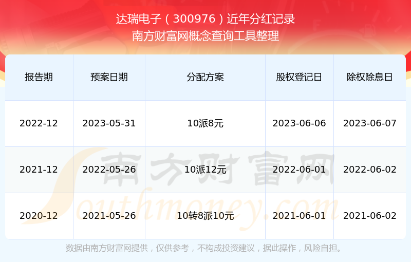 達(dá)瑞電子最新一次公布的分紅方案:10派8元。