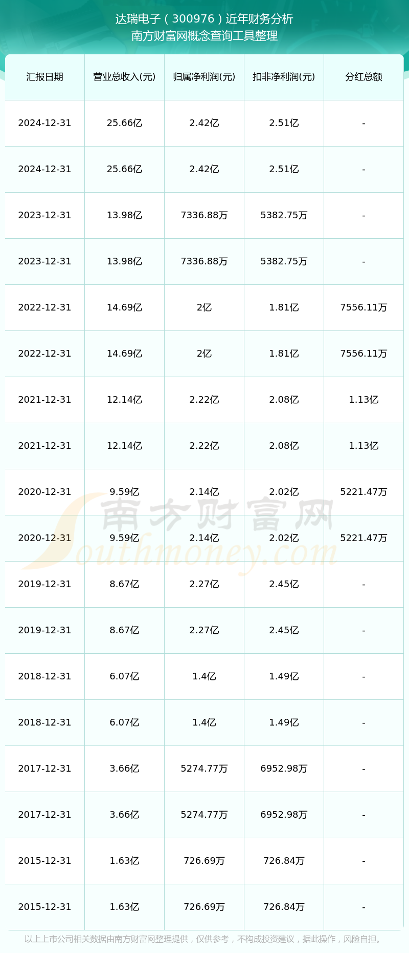 達(dá)瑞電子歷年分紅派息情況如下表所示: