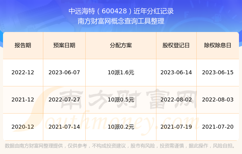 中遠海特最新一次公布的分紅方案:10派1.6元。