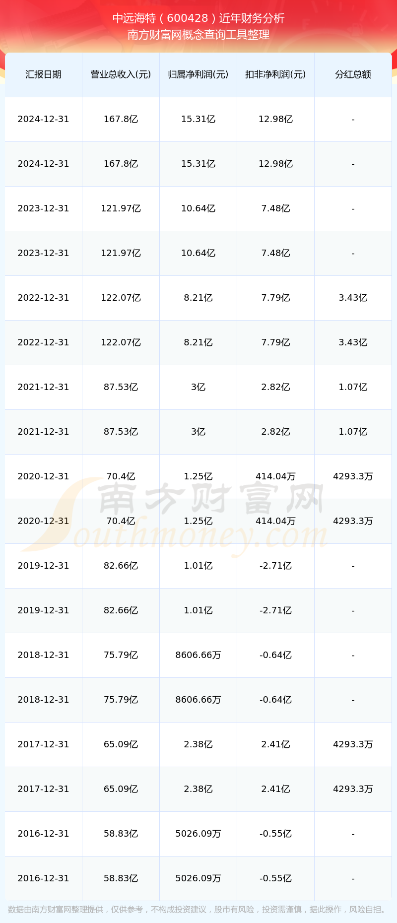 2024年報顯示,中遠海特實現(xiàn)營收167.8億,同比增長37.57%;凈利潤15.31億,同比增長43.82%;毛利率21.84%。