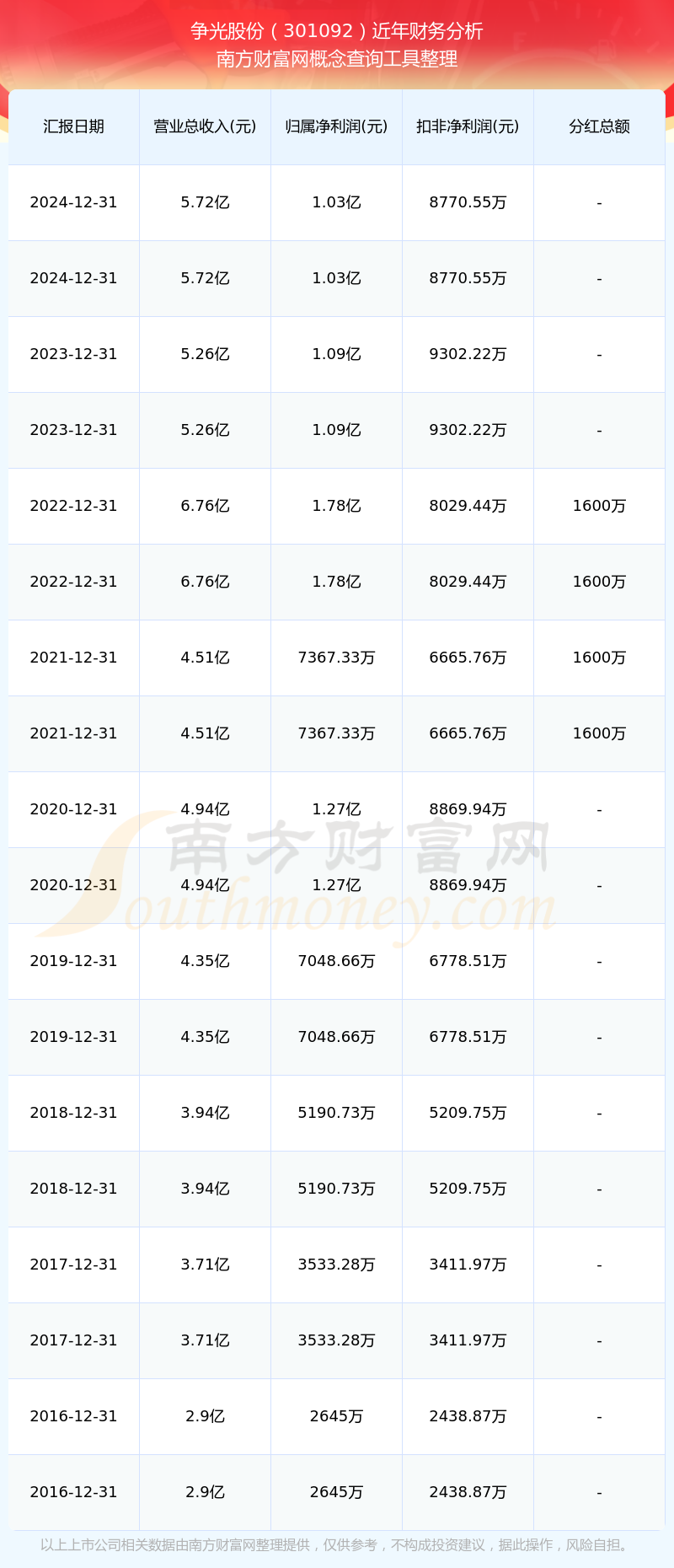 爭(zhēng)光股份歷年分紅派息情況如下表所示: