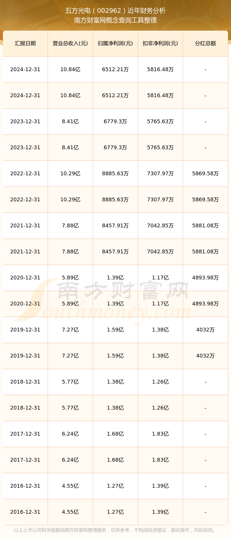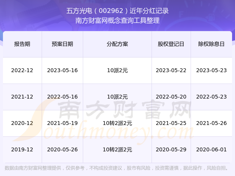 近年五方光電分紅派息情況如下表所示: