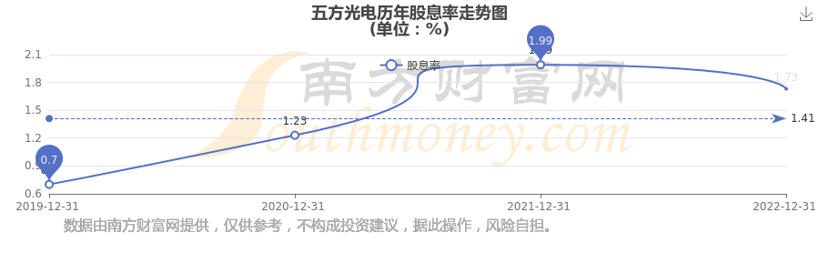 五方光電歷年股息率走勢如下圖: