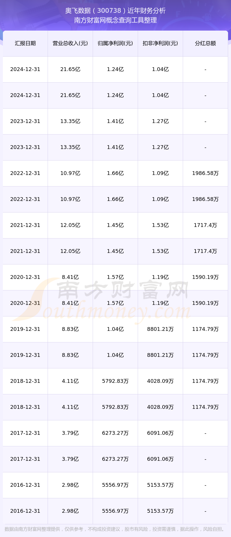 奧飛數(shù)據(jù)公司2024年實(shí)現(xiàn)營(yíng)收21.65億元,凈利潤(rùn)1.24億元,毛利率26.4%。
