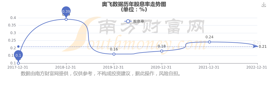 奧飛數(shù)據(jù)歷年股息率走勢(shì)如下圖: