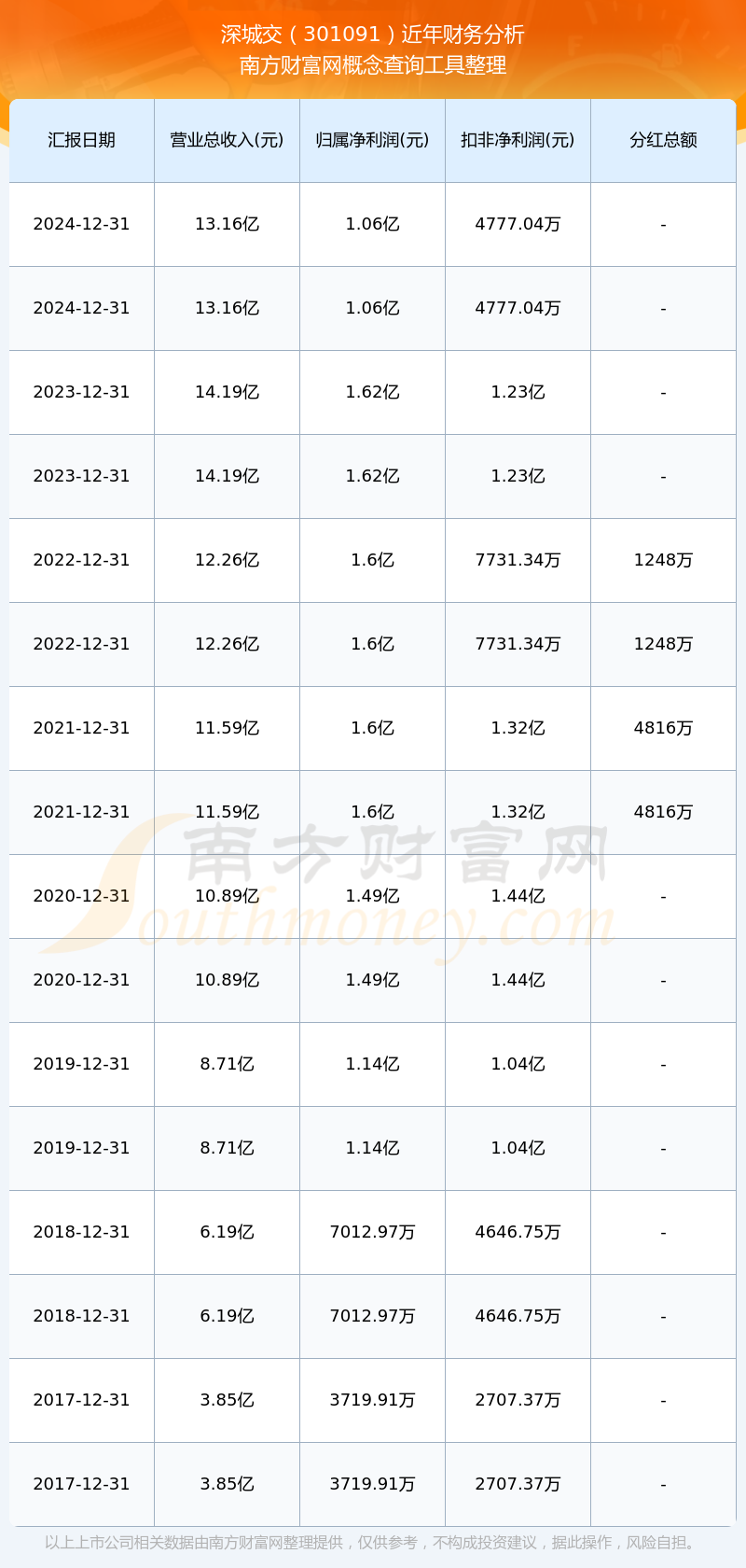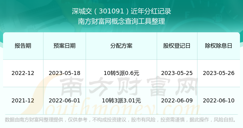 深城交最新一次公布的分紅方案為10轉(zhuǎn)5派0.6元。本次權(quán)益分派股權(quán)登記日為2023年5月25日,除權(quán)除息日為2023年5月26日,派息日為2023年5月26日。