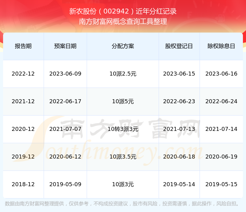 近年新農(nóng)股份分紅派息情況如下表所示: