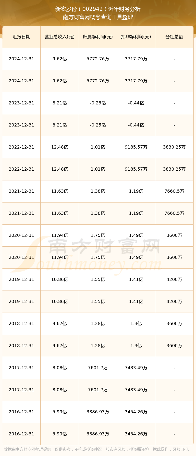 2024年報(bào)顯示,新農(nóng)股份實(shí)現(xiàn)營(yíng)收9.62億,同比增長(zhǎng)17.2%;凈利潤(rùn)5772.76萬(wàn),同比增長(zhǎng)327.5%;毛利率27.56%。