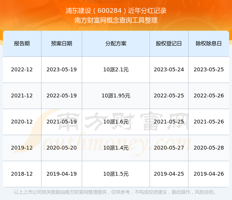 浦東建設(shè)最新一次公布的分紅方案為10派2.1元。本次權(quán)益分派股權(quán)登記日為2023年5月24日,除權(quán)除息日為2023年5月25日,派息日為2023年5月25日。